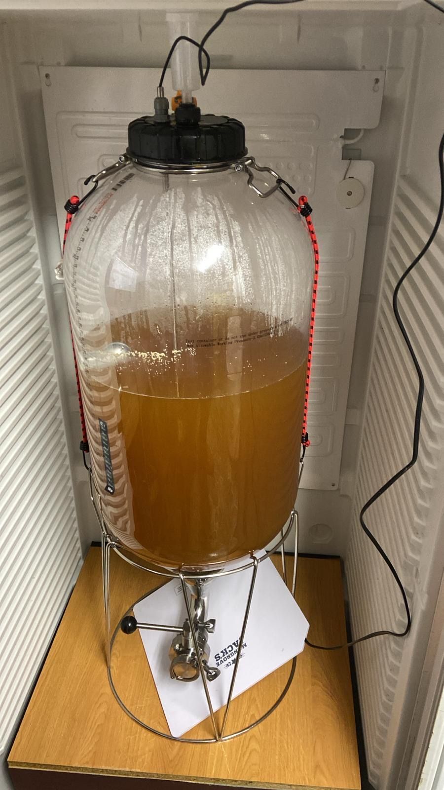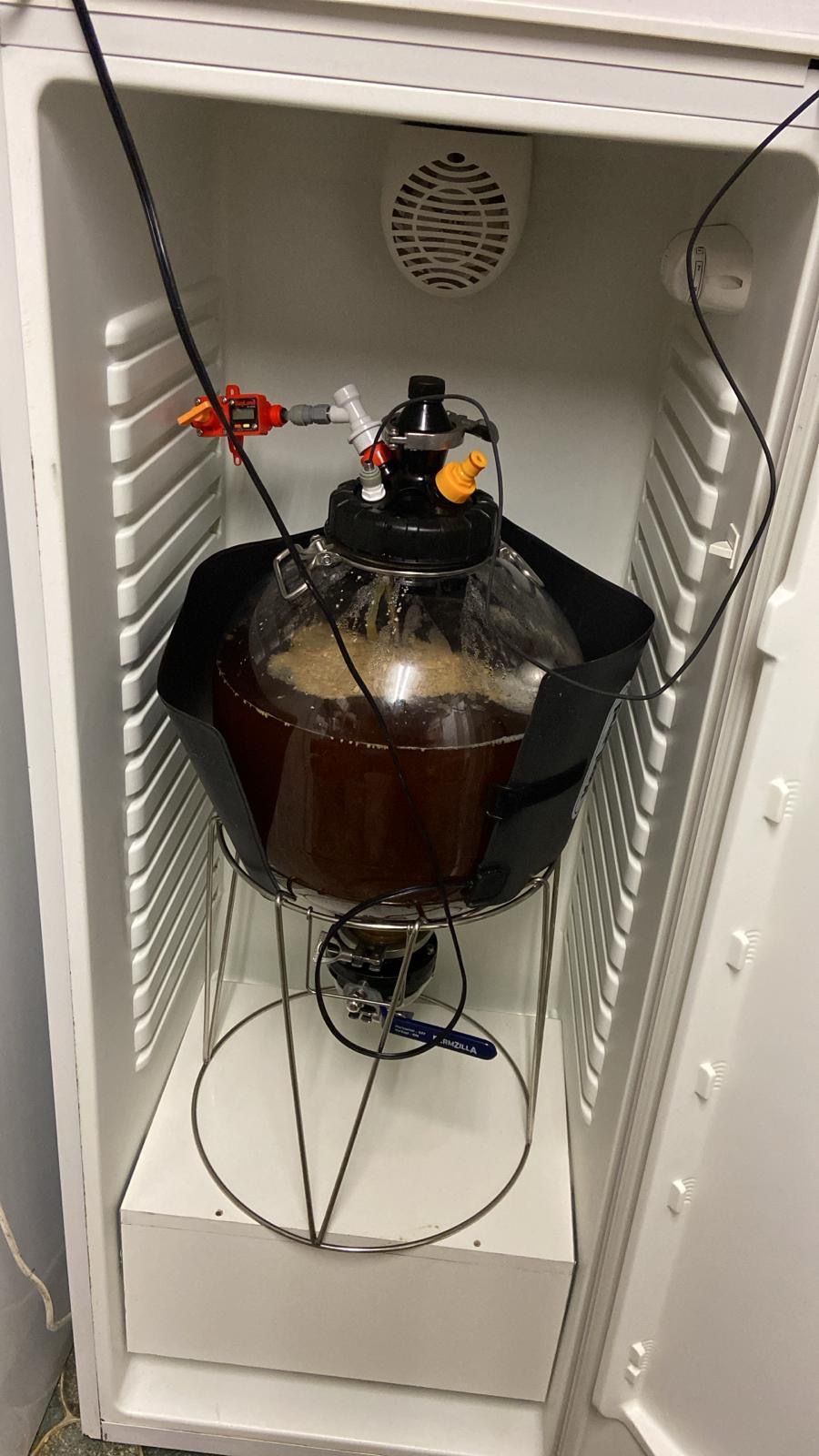 Jetzt steht das frisch gebraute Bier verteilt auf zwei alten Kühlschränken. Damit es optimal reift, braucht