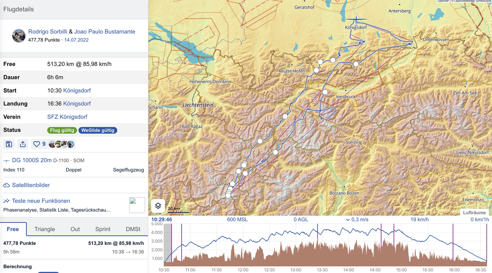 (https://www.weglide.org/flight/199379). In another flight with Manfred we managed to go South after an amazing