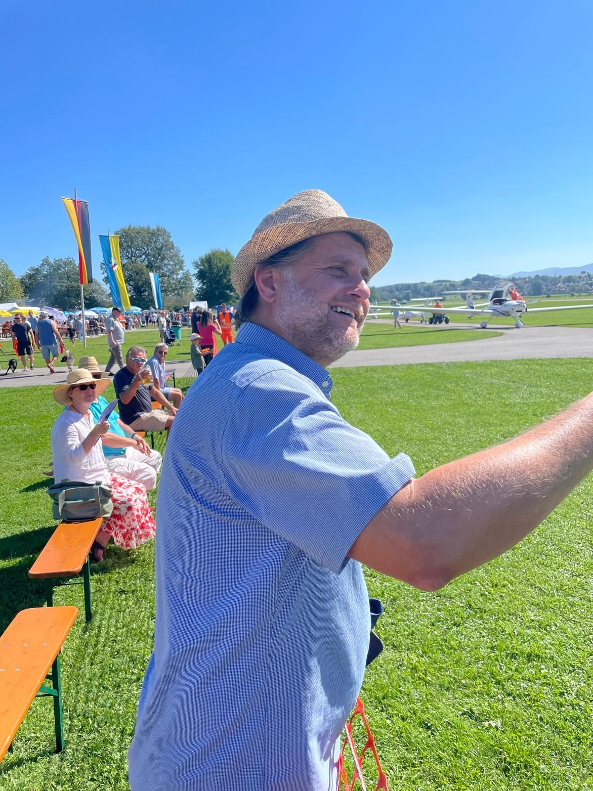Am vergangenen Wochenende feierte der BLVM mit den anderen fünf Vereinen in Königsdorf das legendäre Flugplatzfest. Etwa 10.000 Besucher wurden bei bestem Wetter mit Getränken und kulinarischen Genüssen verwöhnt. Highlight waren die Rundflüge wie auch die einzelnen Flugvorführungen. Wie man sieht, war die Stimmung an unserem Pommes stand bestens, die 600 kg waren zu wenig und am Sonntagmittag ausverkauft. Wir freuen uns auf das nächste Jahr und kaufen einfach ein paar 100 kg mehr.