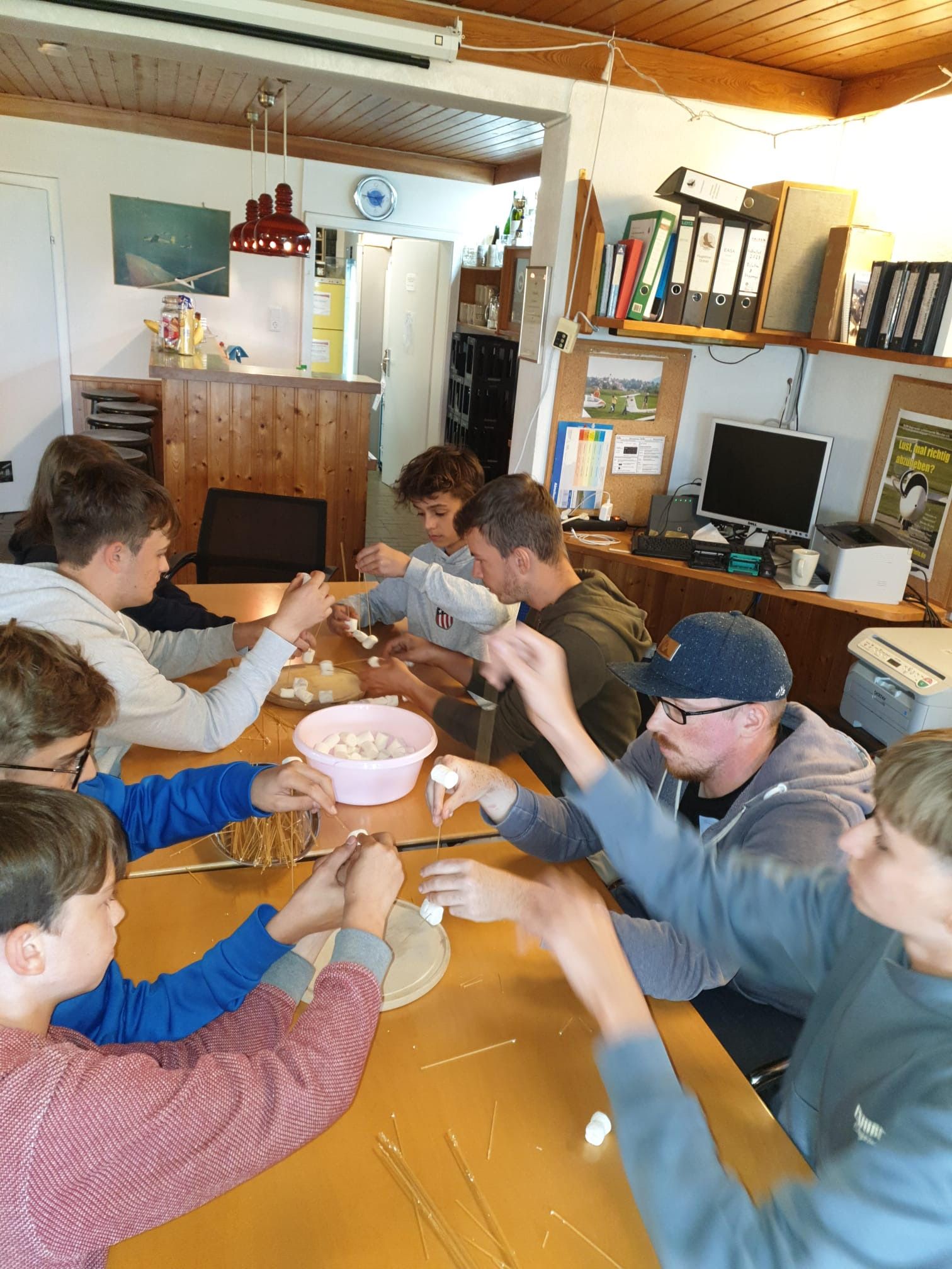 In den unvermeidlichen Pausen – sei es wegen Regen oder wegen der Mittagshitze – nutzten wir die Zeit zum Ausruhen, Spielen und für Theorieunterricht. Besonders in Erinnerung bleibt die Spaghetti-Marshmallow-Challenge, bei der technisches Geschick und Teamgeist gefragt waren.